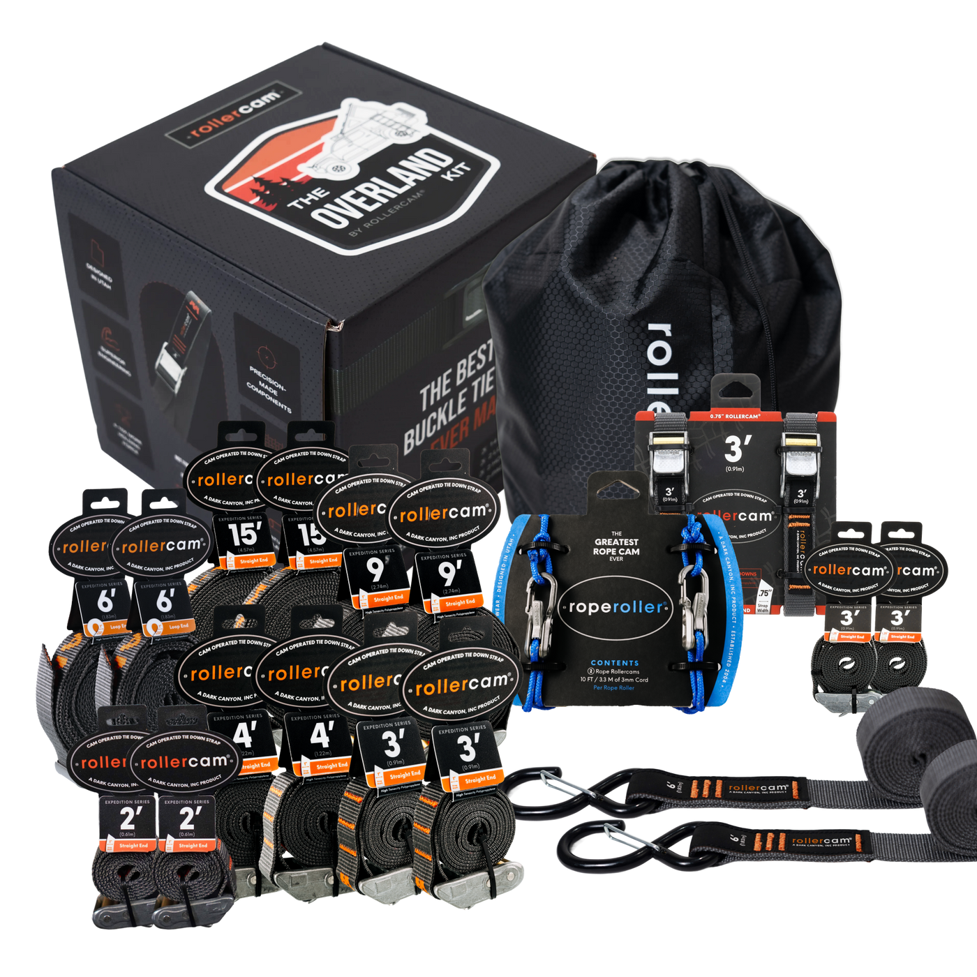 The Rollercam® Overland Kit is the ideal combination of all of our best-selling Rollercam® products, including the Roperoller and all-new strap sizes in various end types. Perfect for gifting or stocking up to replace old straps. Includes various end types and strap lengths to survive all the elements. Adventure safe and keep your gear secure with this pack of straps.